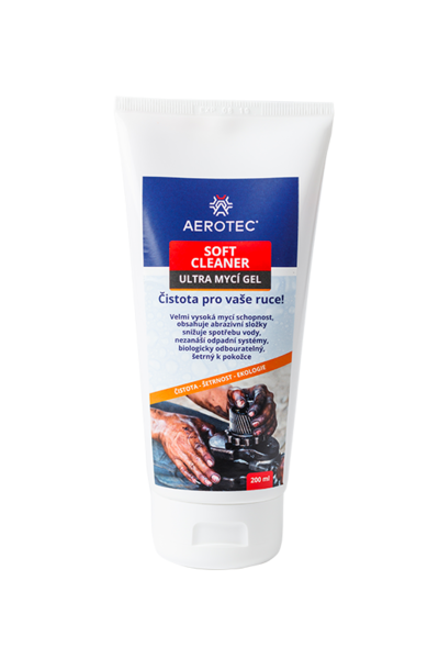 AEROTEC® Soft Cleaner je účinný mycí gel na ruce s vyváženým PH. Výborný svými mycími a dermatologickými vlastnostmi. Odstraňuje šmír, saze, tuky, barvy, smolu a mnoho dalších nečistot. Obsahuje Glycerin.