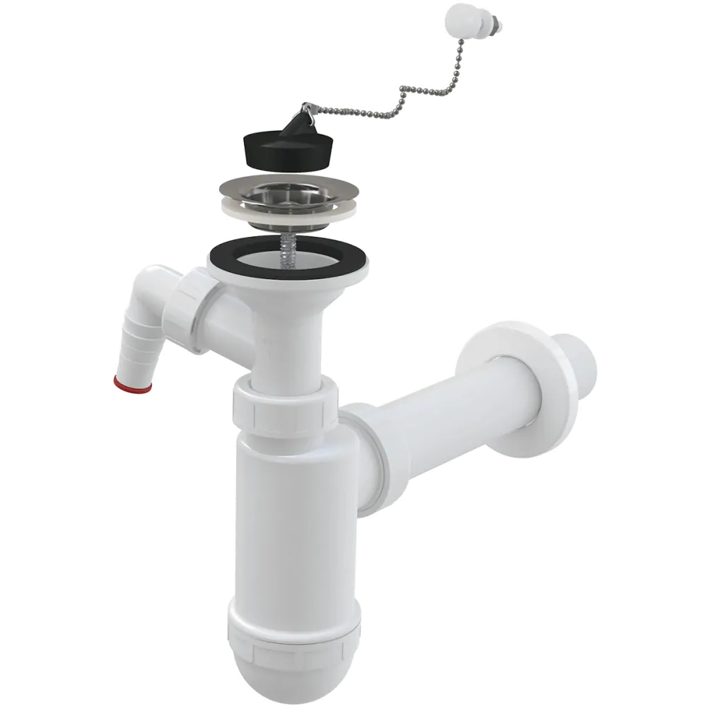 - Alcadrain A41PR SIFON UMYVADLOVÝ DN40 S PŘÍPOJKOU A NEREZOVOU MŘÍŽKOU DN63, ŘETÍZEK