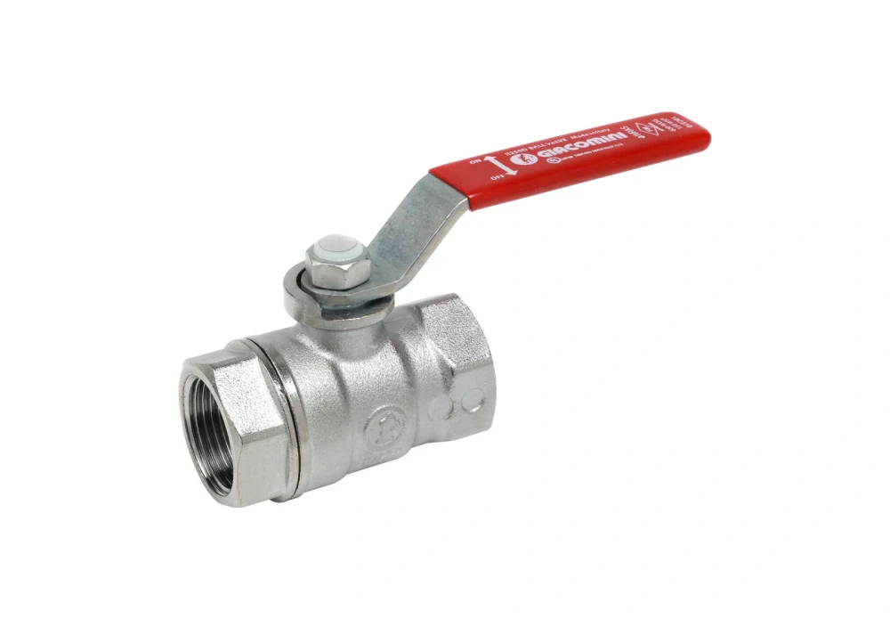 Kulový kohout s vnitřními závity, ovládací páčkou - červená, chromovaný.